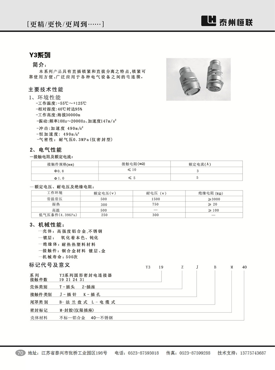 Y3系列圓形電連接器